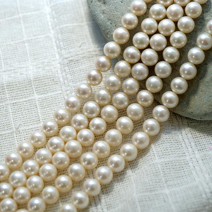 淡水パール ホワイト 6mm セミラウンド(真珠)ツヤ分け2種類