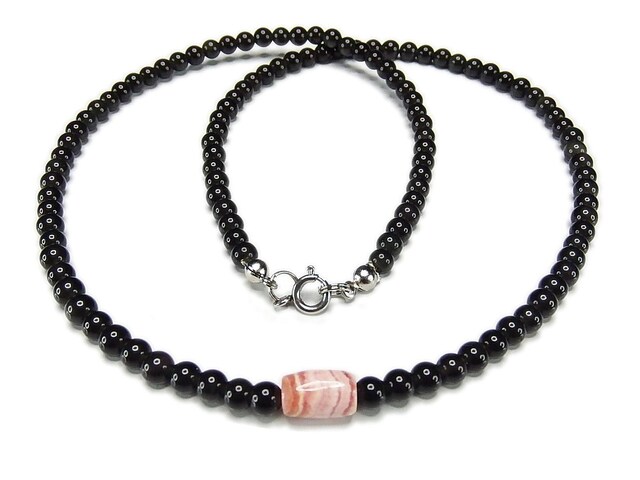 縞入りアルゼンチン産インカローズ樽形オブシディアン約4mm小玉天然石ネックレス