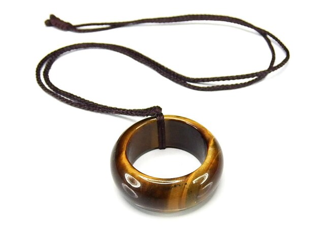 タイガーアイ サムリング 指輪 約24~26号 紐 ネックレス 天然石 仕事運 K1-5-604