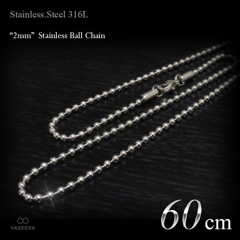 2mm幅 ステンレス ボールチェーン 60cm(ロングサイズ) 【ステンレススチール316L(SUS316L) /サージカルステン...