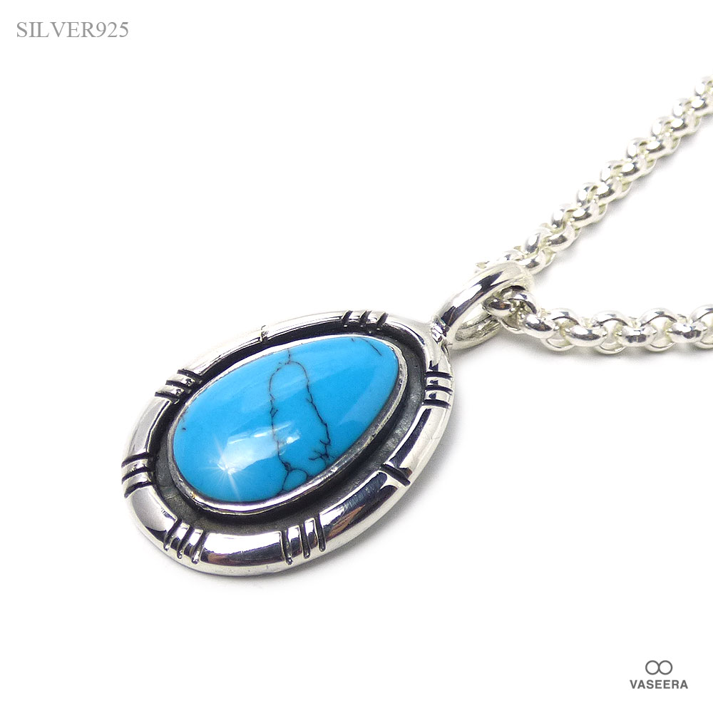 43mm ネイティブ系 ドロップ型 ターコイズ埋め込み シルバー ペンダント トップ 【シルバー925/SILVER925 /ペン...