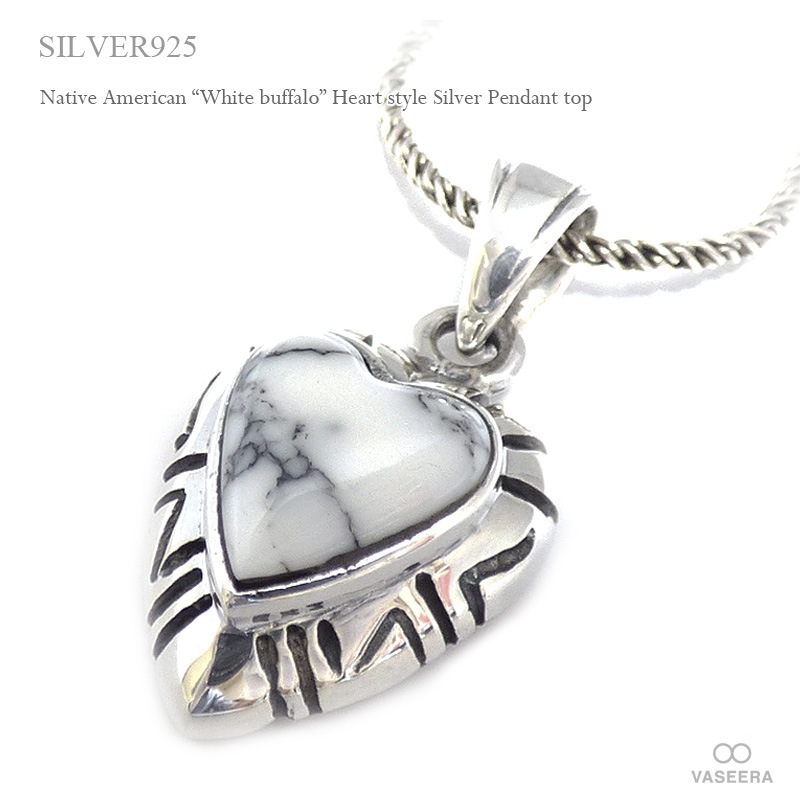 ネイティブアメリカン ホワイトバッファロー埋め込み ハート型 シルバー ペンダント トップ 【シルバー925/SILVER925 ...