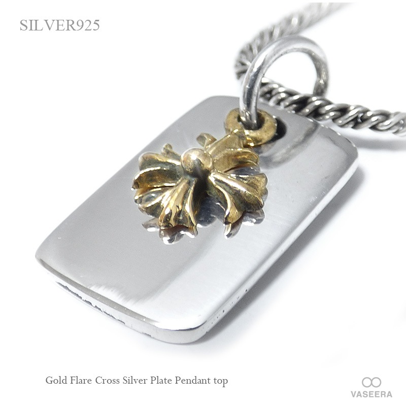 ゴールド フレアフローラル クロス 鏡面シルバー プレート ペンダント トップ 【シルバー925/SILVER925 /ペンダント...