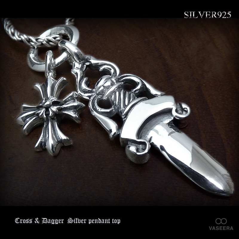 ダガー(短剣) & ダブルフレアクロス 2蓮 シルバー ペンダント トップ【シルバー925/SILVER925 /ペンダントヘッド...
