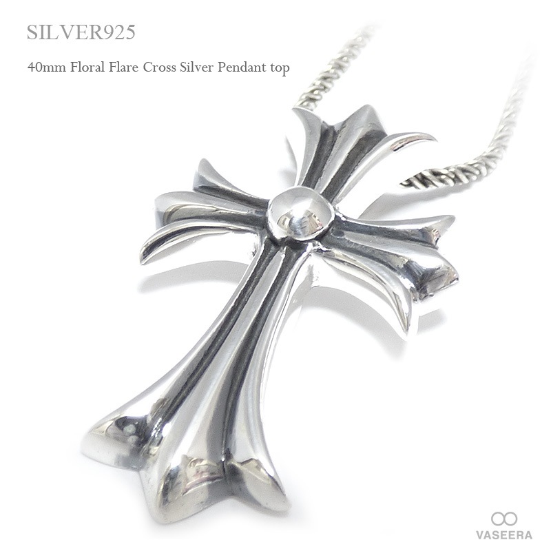40mm フローラル フレア クロス シルバー ペンダント トップ 【シルバー925/SILVER925 /ペンダントヘッド】