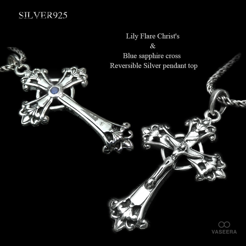 ブルーサファイア&キリスト リバーシブル(両面仕様) クロス シルバー ペンダント トップ 【シルバー925/SILVER925 ...