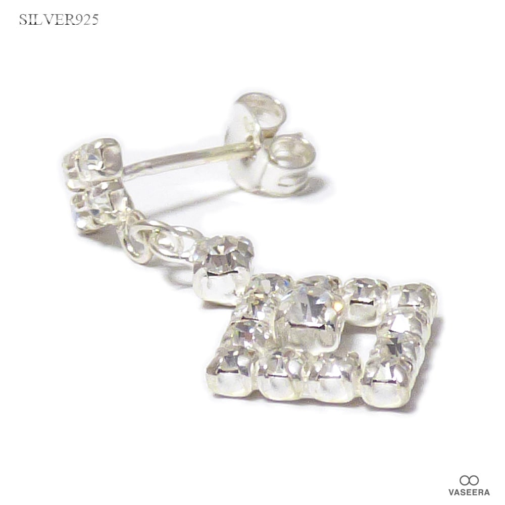 【単品販売(一個)】 ダイヤ型(菱形)チャーム スワロフスキー パヴェ・セッティング仕上げ シルバー925 スタッドピアス 【シ...