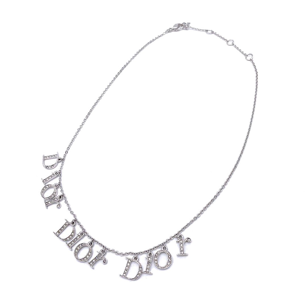 Christian Dior クリスチャンディオール 3連ロゴネックレス ラインストーン シルバー