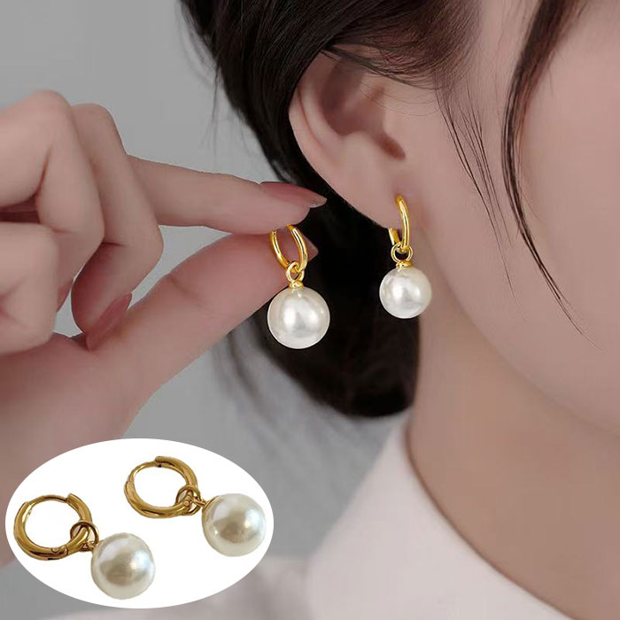 金属アレルギー対応 フープピアス パール チャーム レディース ゴールド 卒業式 入学式