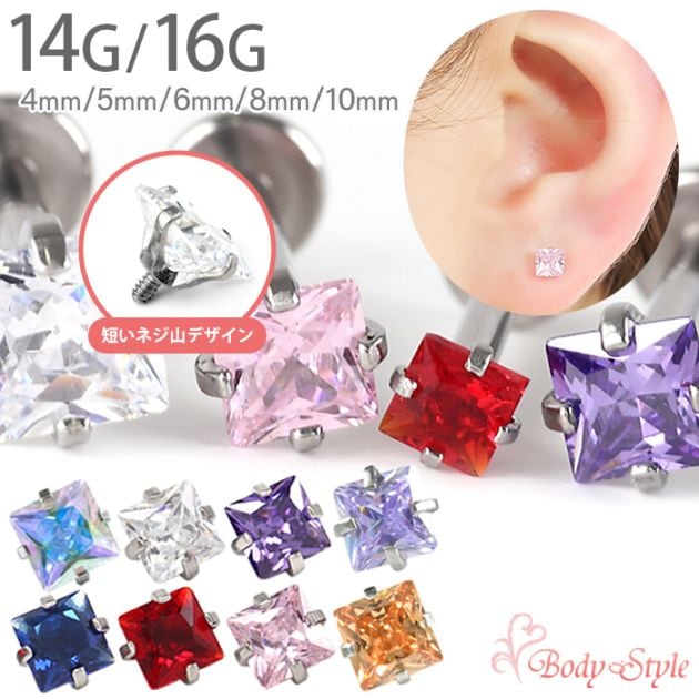 ボディピアス 16g 14g ラブレットスタッド 四角 スクエア 立爪 ジュエル トラガス 軟骨ピアス ヘリックス 耳たぶ 【立爪...