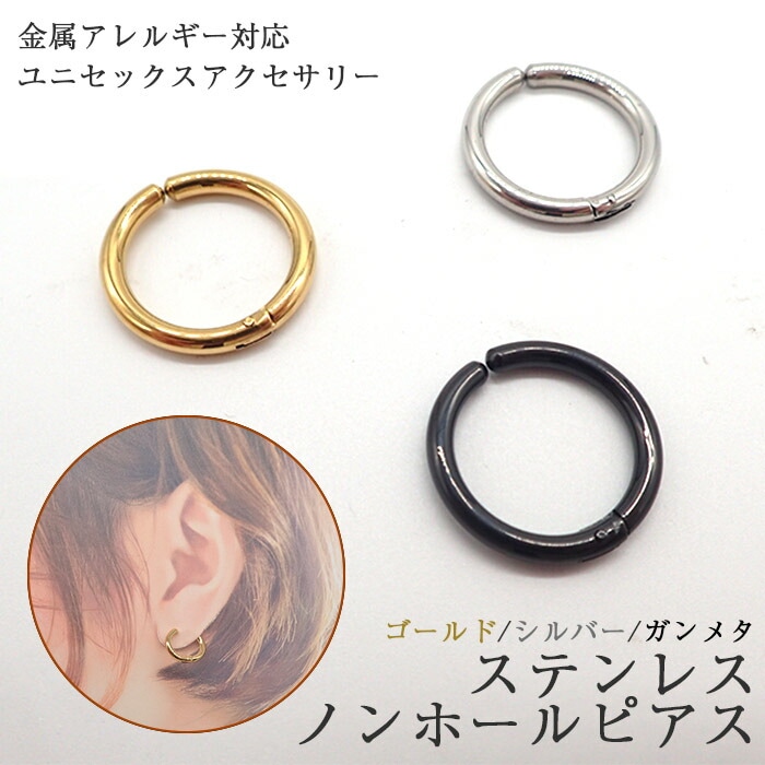 ステンレス ノンホールピアス 1ペア 金属アレルギー対応 イヤリング ユニセックス メンズ シンプル アクセサリー メール便送料...
