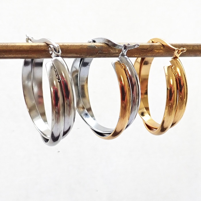 金属アレルギー対応 【 フープピアス 1ペア】 ステンレス ピアス ゴールド シルバー バイカラー 国内発送