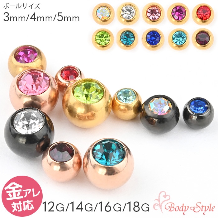 ピアス キャッチ ボール ボディピアス 14g 16g 18g ジュエル パーツ カスタマイズ ピンクゴールド ねじ式 耳ピアス ...