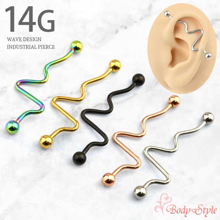 インダストリアル ピアス 14G ウェーブデザイン ボディピアス 金属アレ対応 医療用 サージカルステンレス 男女兼用 ヘリックス...
