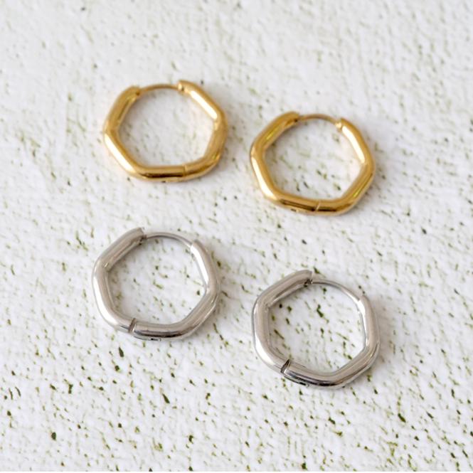 サージカルステンレス ピアス 【281.六角フープ 15mm 1ペア】 シンプル キャッチレス 316