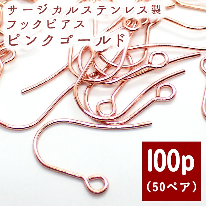 サージカルステンレス ピアスパーツ 【44 PG】【100個】 フックピアス ピンクゴールド 金属アレルギー対応 (L / Sサイ...