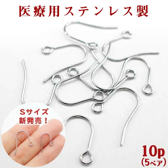 サージカルステンレス ピアスパーツ 【45】【10個】フックピアス シルバー 金属アレルギー対応 (L / Sサイズ) ピアス 金...
