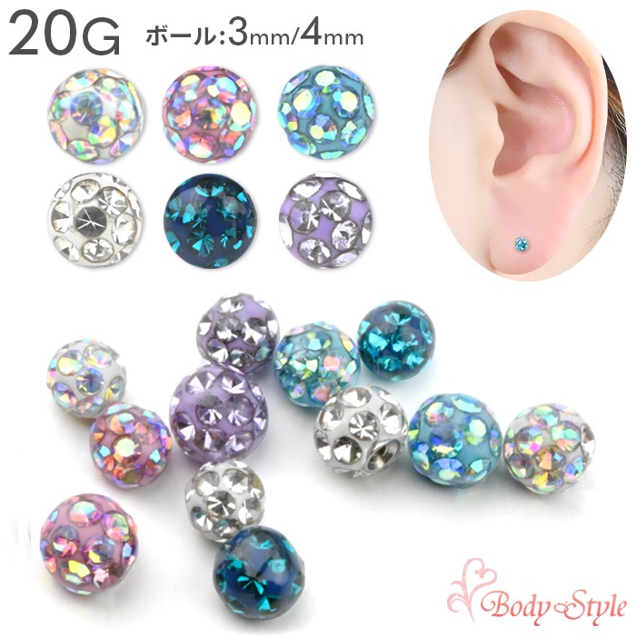 キャッチのみ ボディピアス パヴェボール 3mm 4mm 20G ピアスキャッチ パーツ 軟骨ピアス 軟骨用 軟骨 ピアス へそピ...