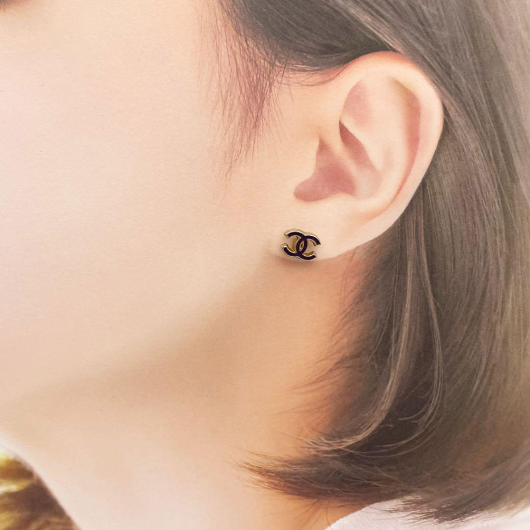 CHANEL シャネル ピアス ココマーク パープル ブラック シルバー 01A