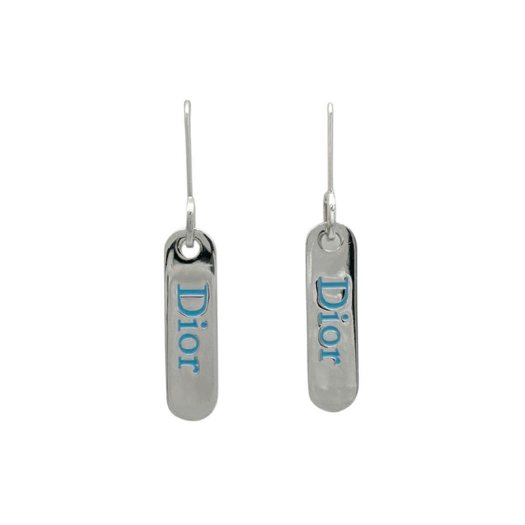 Christian Dior クリスチャンディオール ピアス ロゴ プレート シルバー ブルー