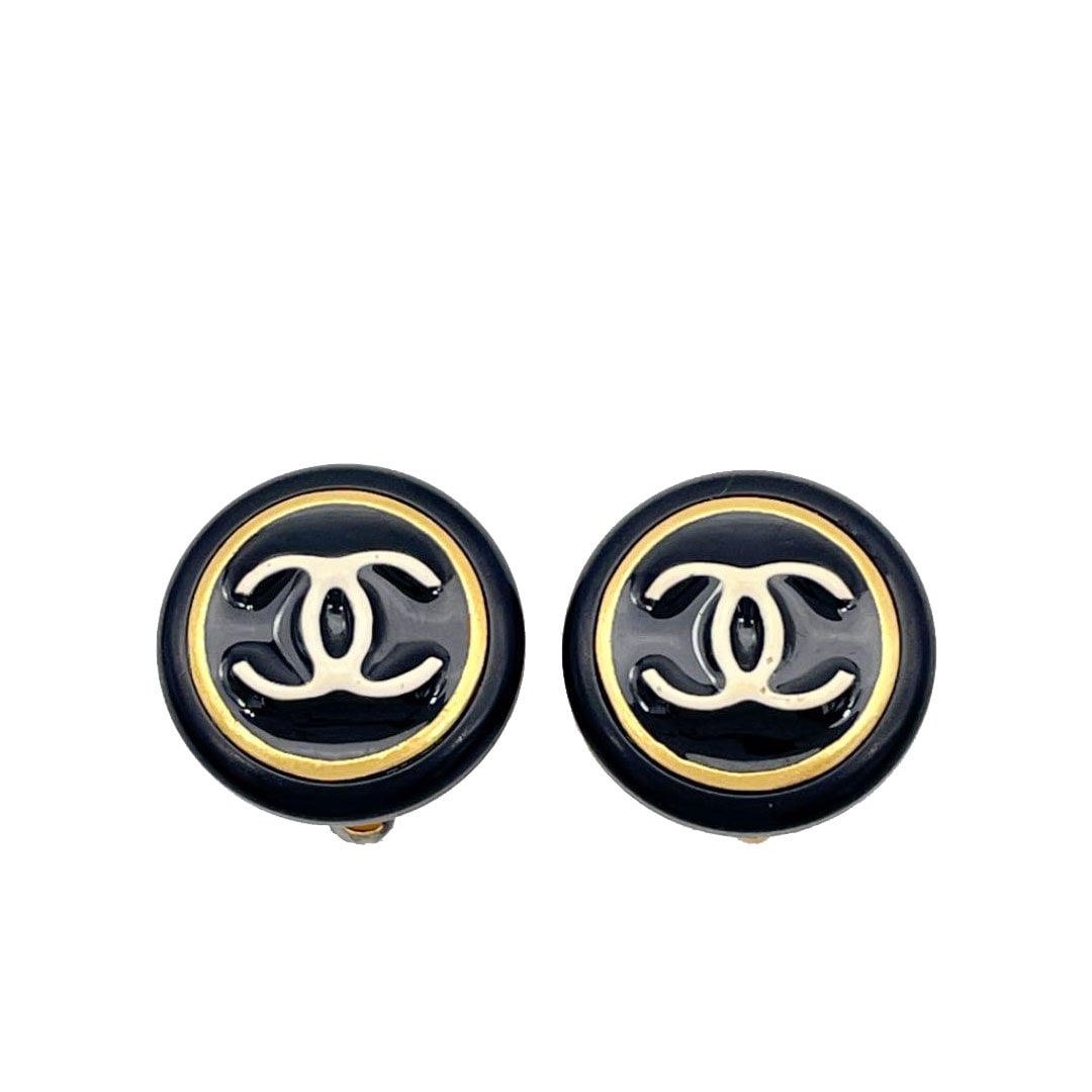 CHANEL シャネル ラウンドイヤリング ココマーク ブラック ホワイト ゴールド 96P ヴィンテージ