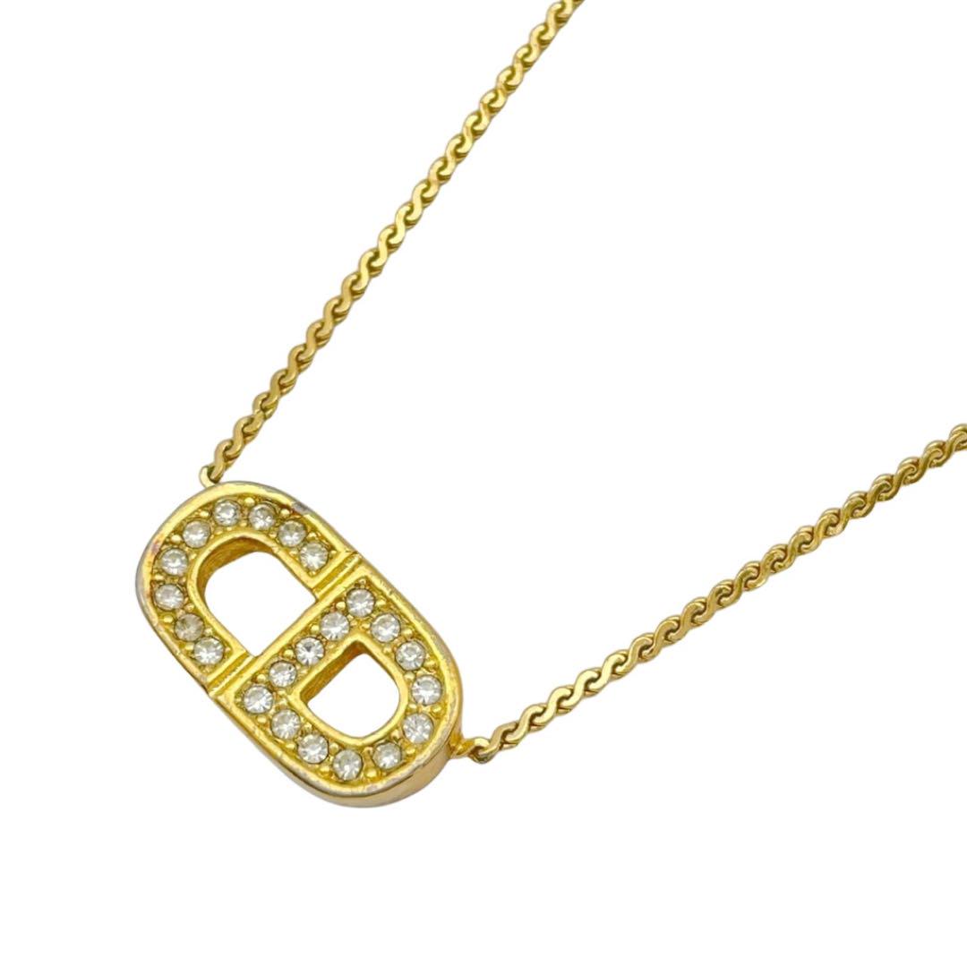 Christian Dior クリスチャンディオール ネックレス CDロゴ ラインストーン ゴールド
