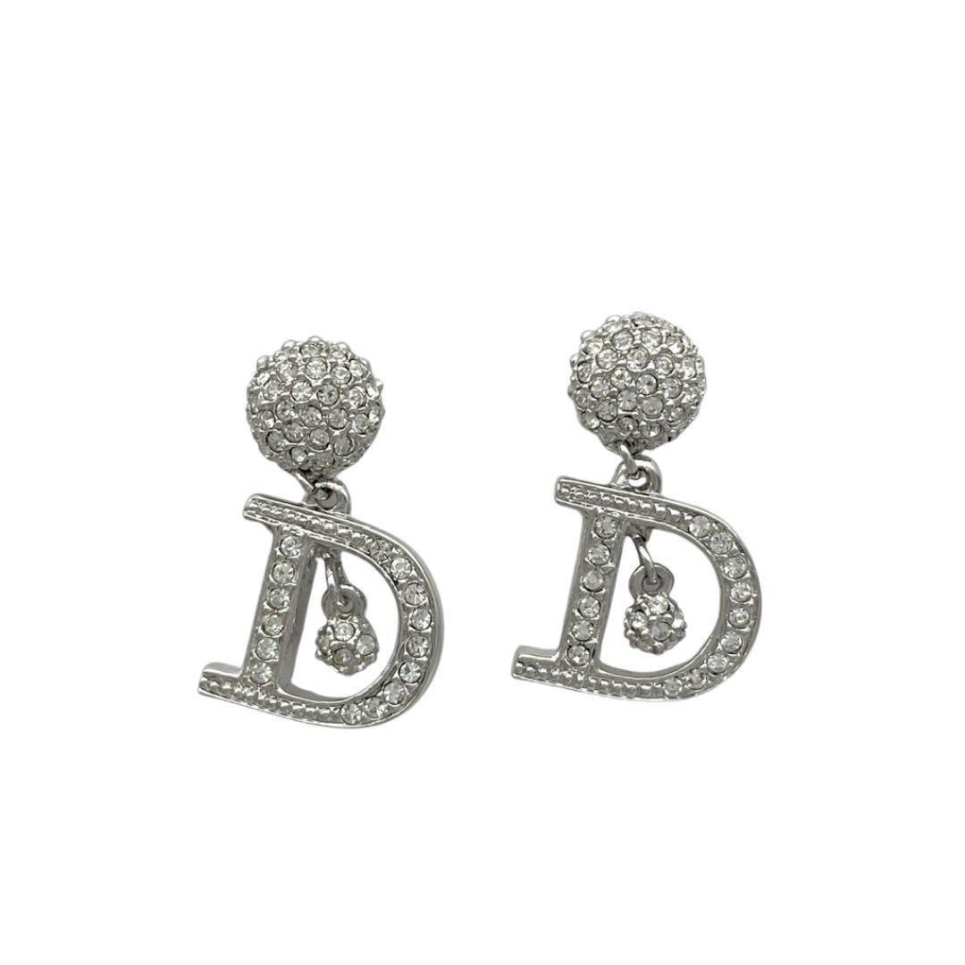 Christian Dior クリスチャンディオール ピアス Dロゴ ラインストーン シルバー