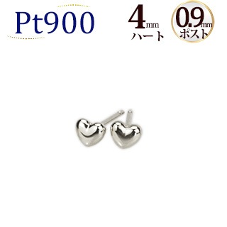 Pt ハートプラチナピアス(4mm、0.9mm芯)