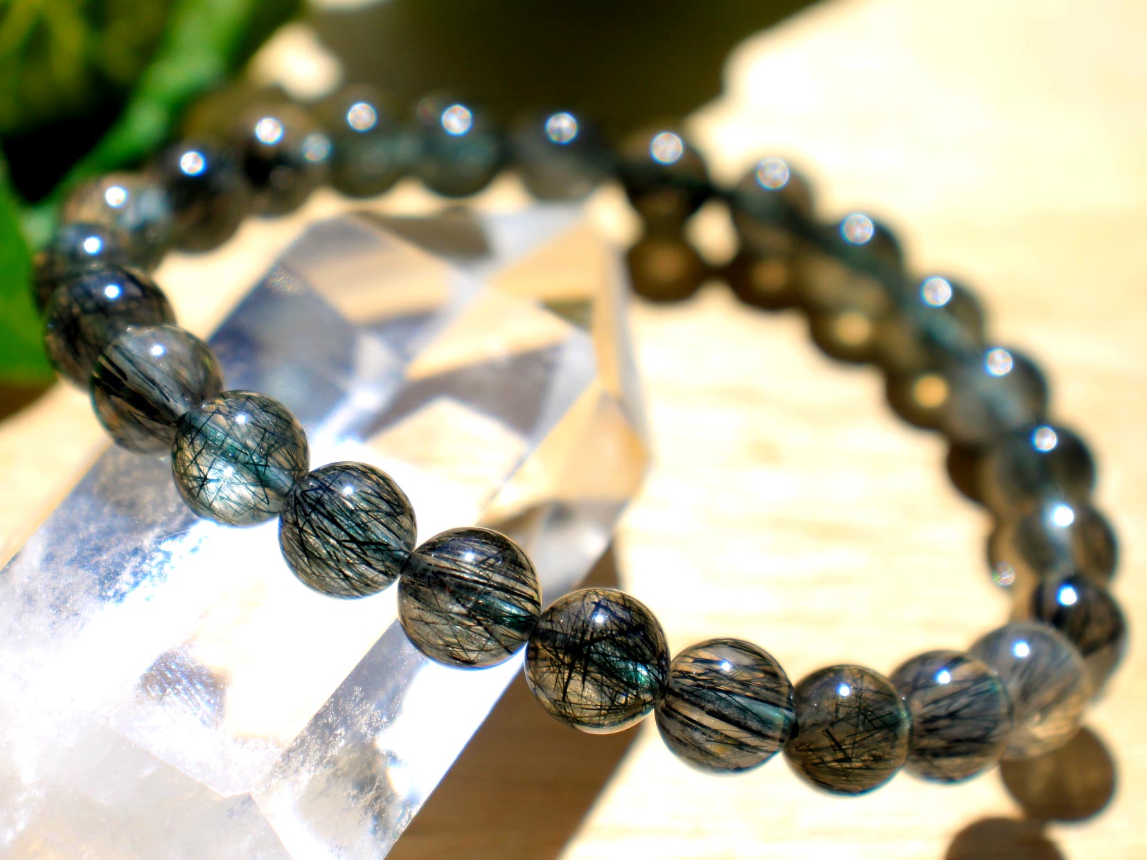 【1点もの】超希少!★金銭を呼び込む金運の石★天然石ブレスレット/ブルールチルクォーツ(Rutilated Quartz/藍針水晶...