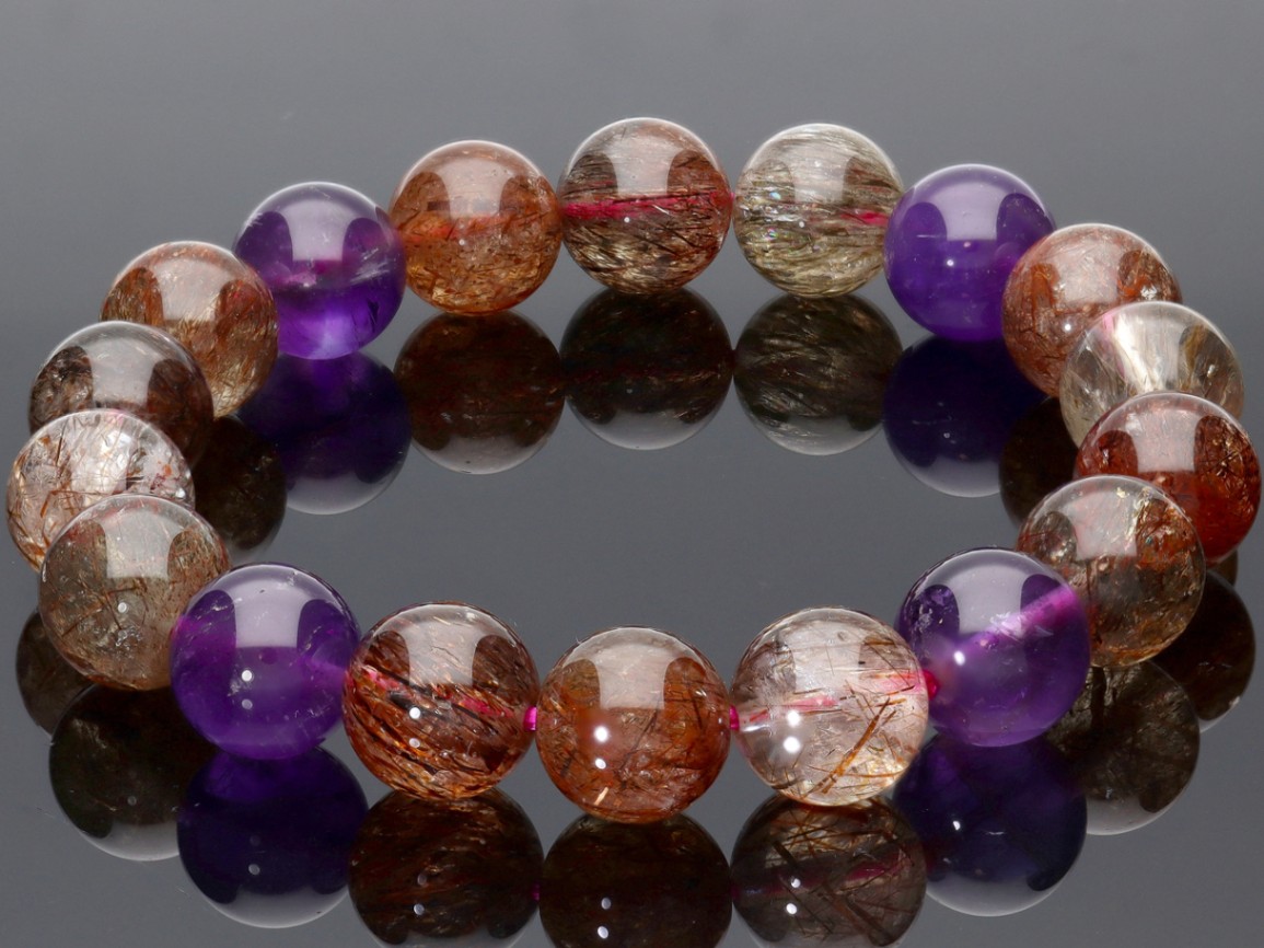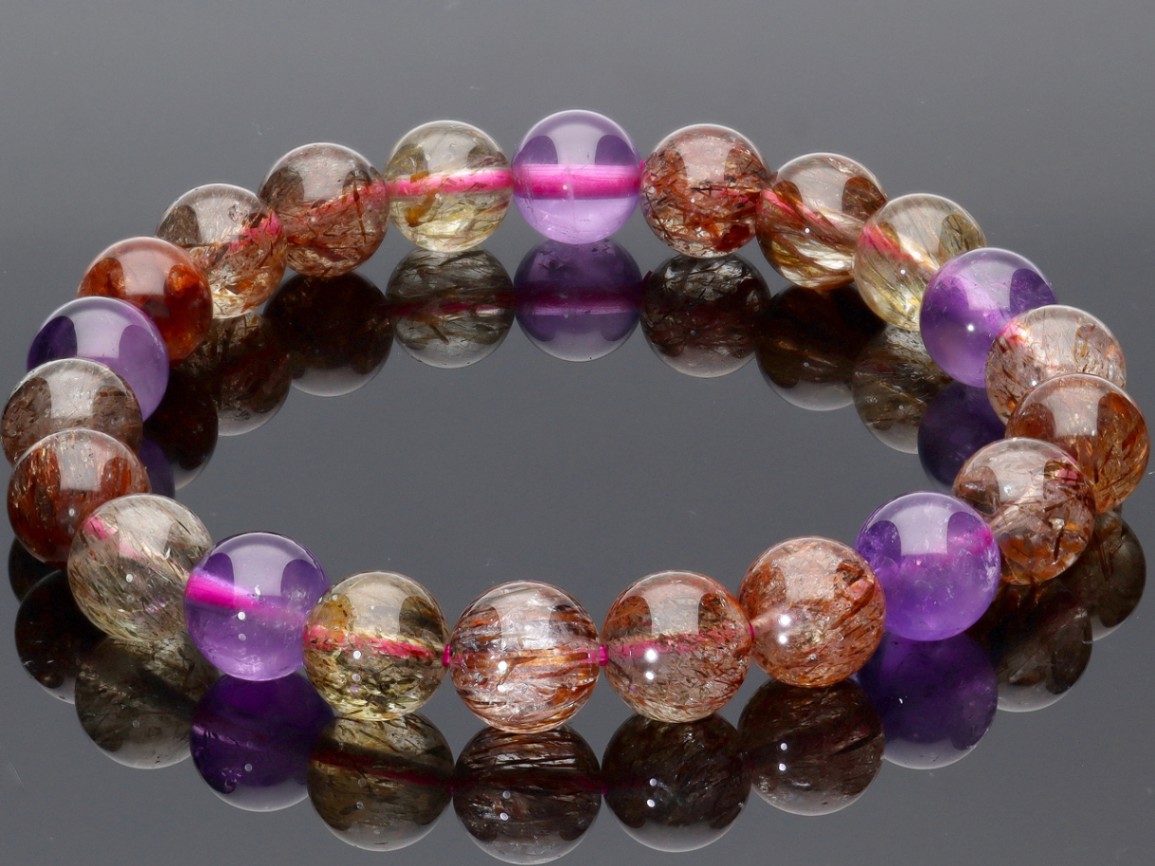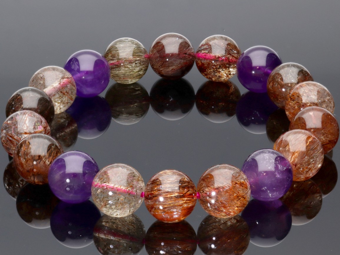 【1点物】5Aグレード★濃厚内包物★天然石ブレスレット/ダークスーパーセブン(Super seven/セイクリッドセブン)/ラウン...