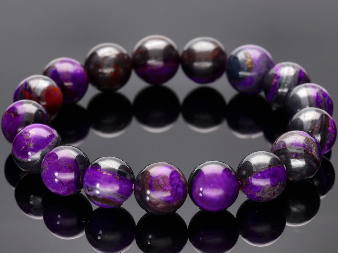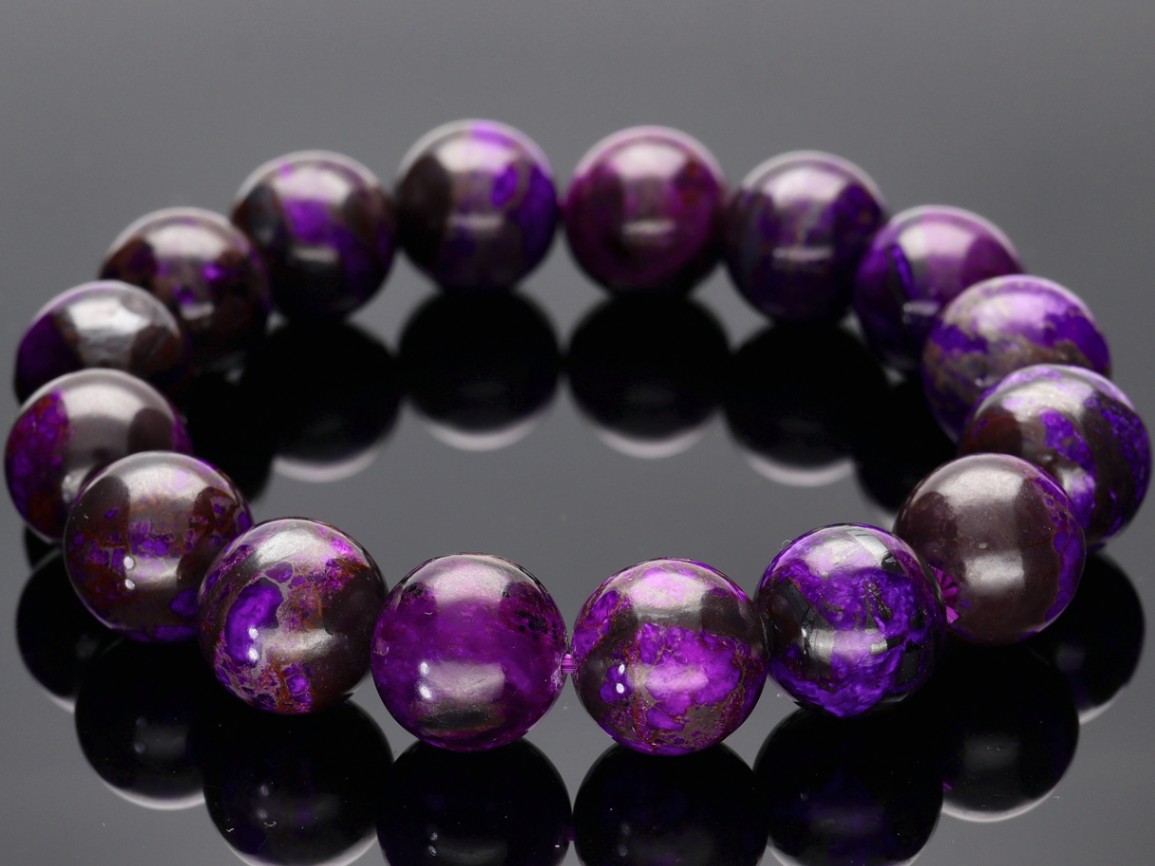 【1点物】超美色!世界三大ヒーリングストーン★FA/天然石ブレスレット/スギライト(杉石/Sugilite)/ラウンド/約13mm...