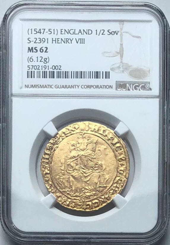 グレートブリテンエドワード6世ヘンリー8世名義1547-49年1/2ソブリン金貨NGC-MS62