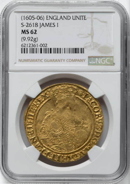 【動画あり】グレートブリテン 1605-06年 ジェームズ1世 ゴールド・ユナイト金貨 NGC-MS62