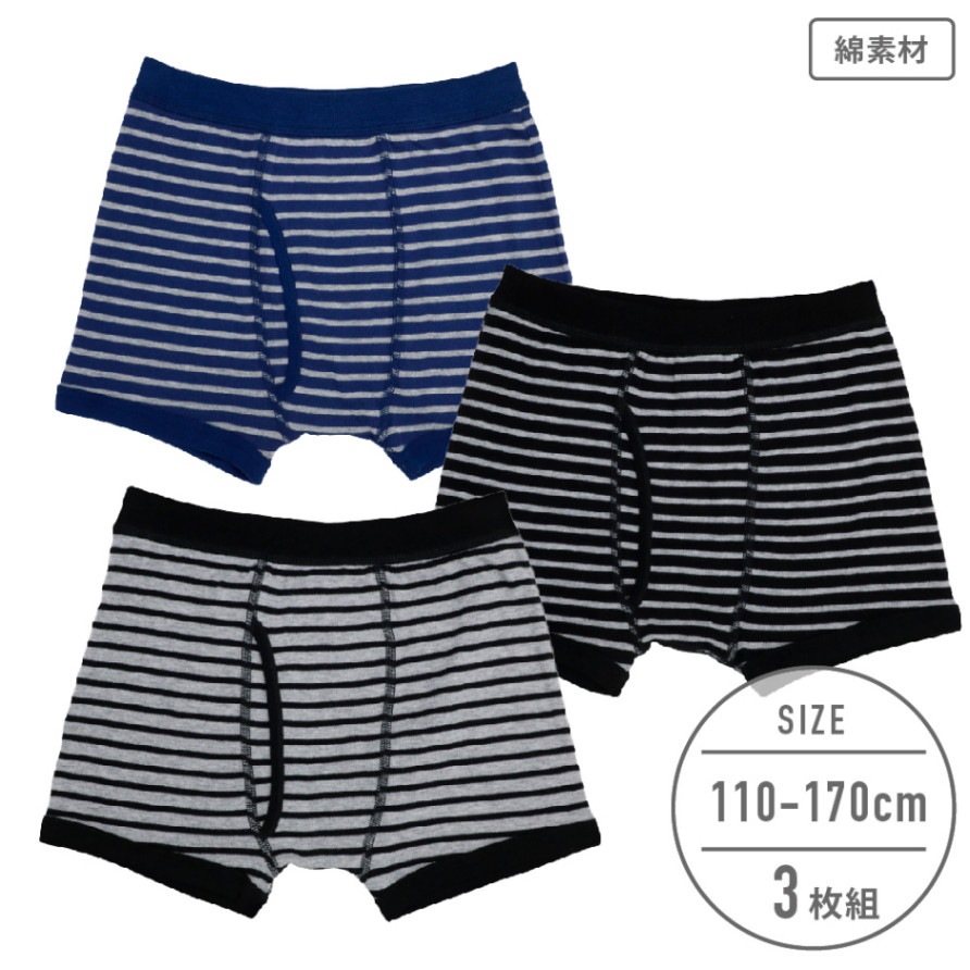 【男の子】ボクサーブリーフ 3枚組 ボーダー/天スパンゴム 110~170cm【綿混】