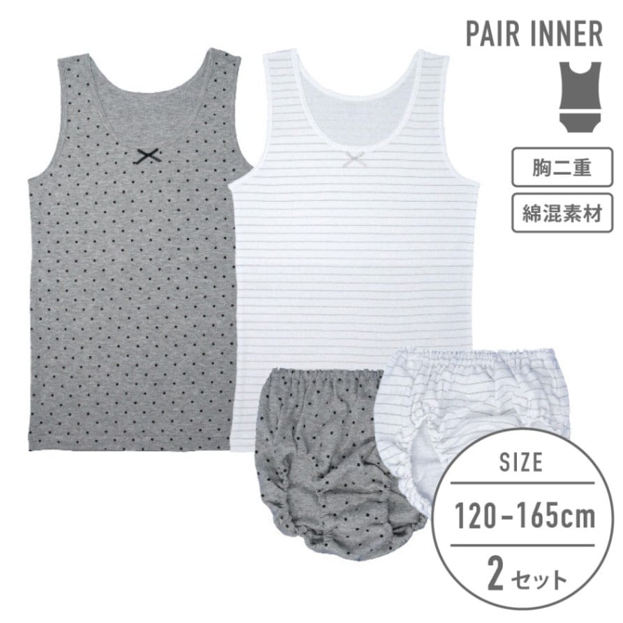 【女の子】ペアインナー/胸二重タンクトップ 2枚組/ドット・ボーダー柄 120~165cm【綿混】