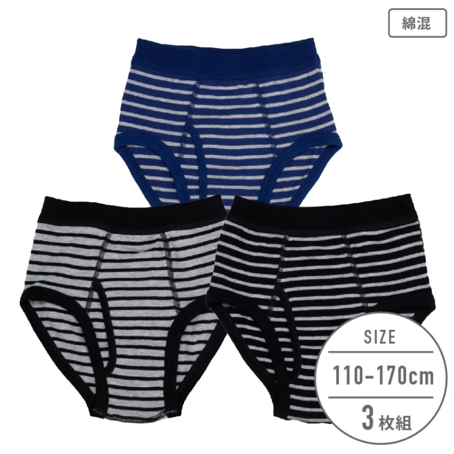 【男の子】キッズジュニアブリーフ 3枚組 ボーダー/天スパンゴム 110~170cm【綿混】