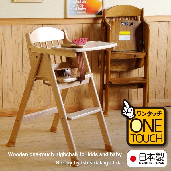 日本製「木製ワンタッチハイチェア [テーブル&腰ベルト付き]」