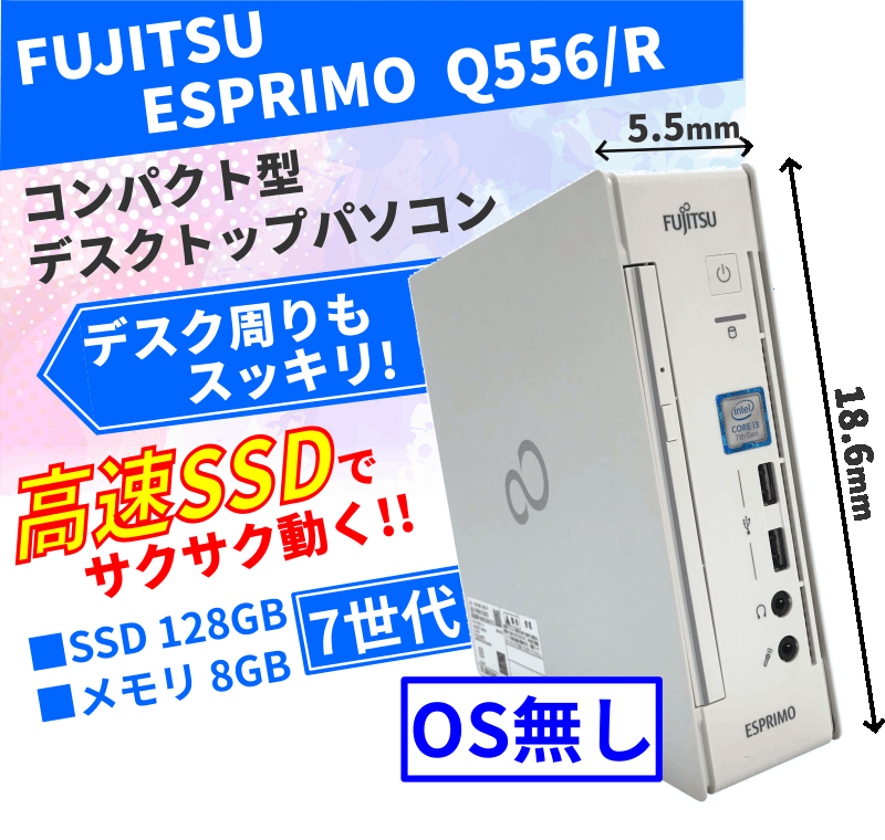 [F04D]【OS無し】ESPRIMO Q556/R (Corei3-7100T/8GB/SSD128GB)