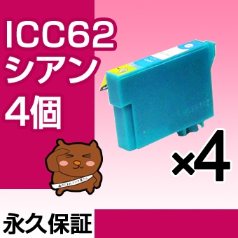 ICC62 4個セット 互換インク EPSON(エプソン)プリンター用 シアン 【永久保証】