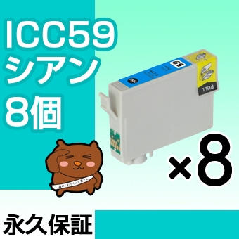 ICC59 8個セット 互換インク EPSON(エプソン)プリンター用 シアン【永久保証】
