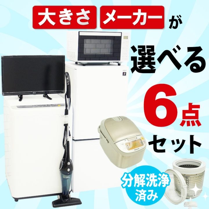 選べる中古家電6点セット(冷蔵庫+洗濯機+電子レンジ+テレビ+掃除機+炊飯器)/引越し・一人暮らしにおすすめ メーカー・サイズを自...