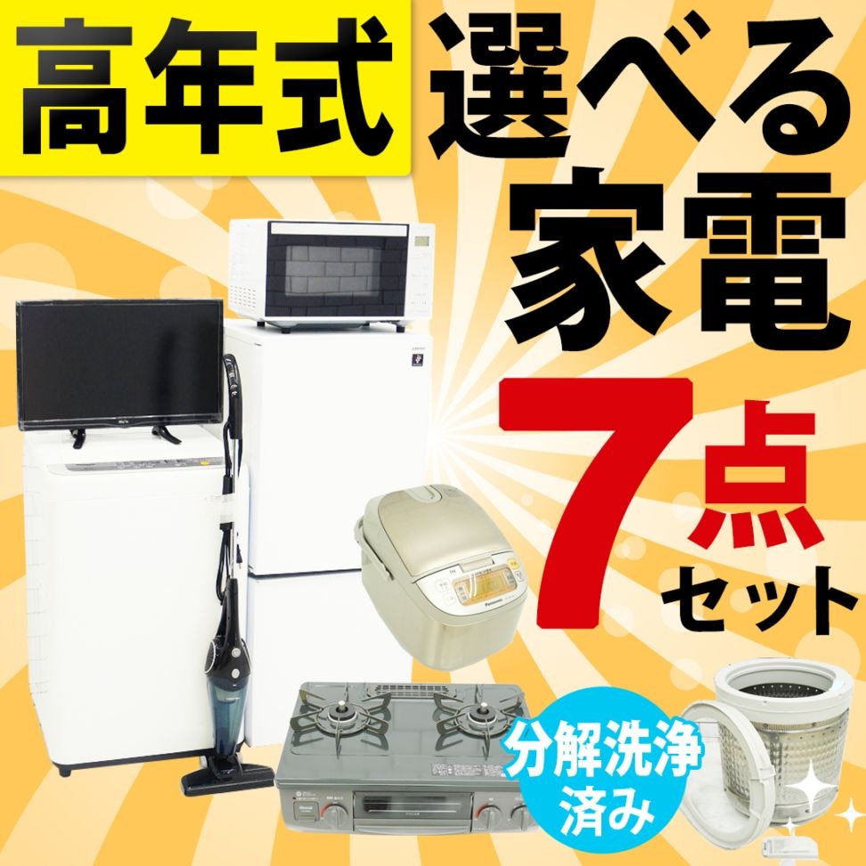 選べる中古家電7点セット(冷蔵庫・洗濯機・レンジ・テレビ・掃除機・炊飯器ガステーブル)/新生活応援 引越し・一人暮らしにおすすめ