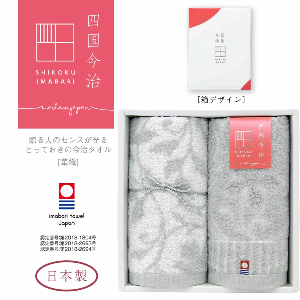 【ギフト・プレゼント・ご挨拶】タオルギフトセット グレー 約34×75cm 四国今治 華織-かおり 2枚入【日本製 今治マーク入り...