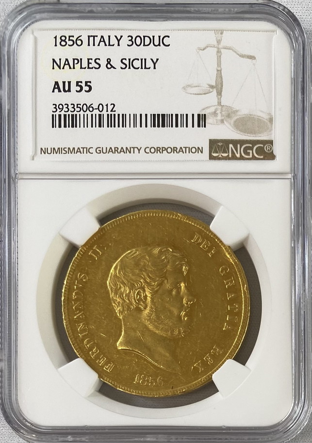 【動画あり】【レア度3-R3】イタリア 1856年 フェルディナンド2世 30ダカット金貨 NGC-AU55