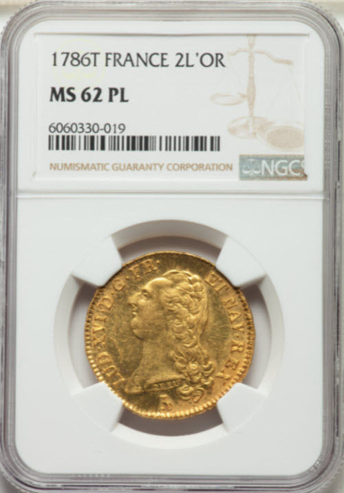 【動画あり】フランス1786-T年ルイ16世2ルイドール金貨プルーフライクNGC-MS62