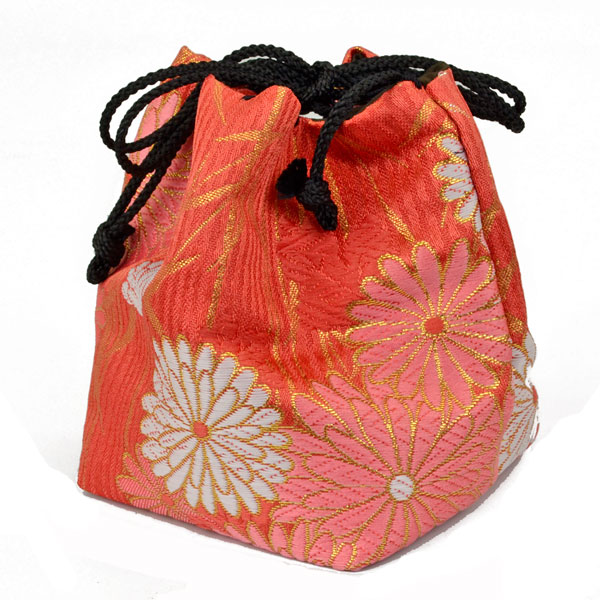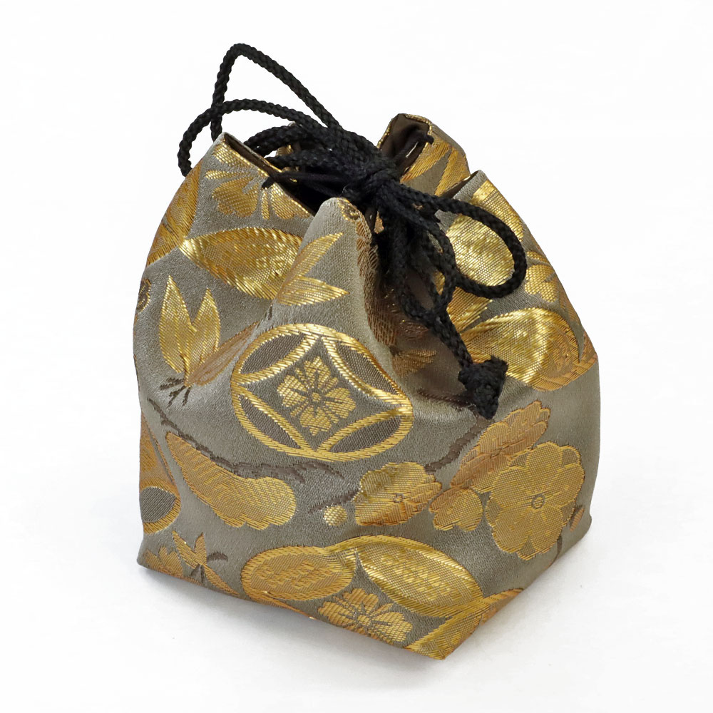 将棋駒袋 金襴 菊と梅 煌びやかな金襴の駒袋