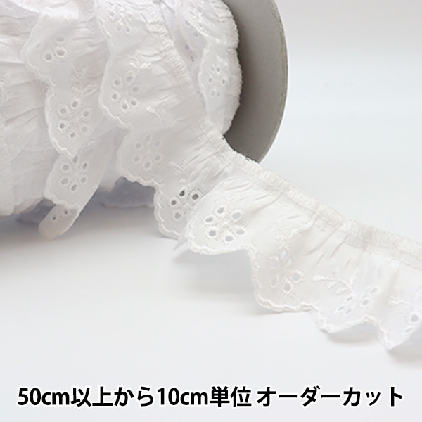 【数量5から】 レースリボンテープ 『綿フリル 1番色 1082F-1』