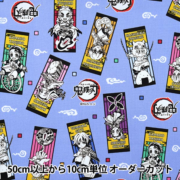 【現品限り】 【数量10から】 生地 『オックス 鬼滅の刃 ちょこんとちびキャラ柄 ブルー A7200-5A』