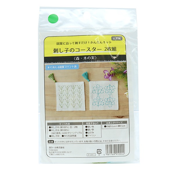 刺しゅうキット 『刺し子キット コースター 森×木の実 00124-04』 HARAWOOL 原ウール