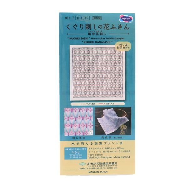 刺しゅう布 『刺し子 花ふきん くぐり刺し布パック 亀甲花刺し 白 H-1047』 Olympus オリムパス